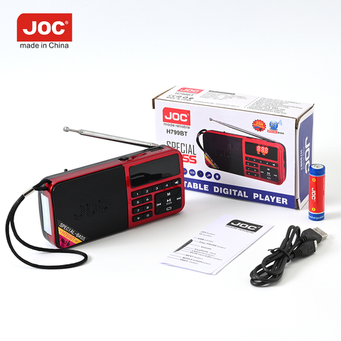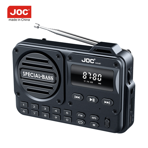 JOC H456BT Tragbarer Mini-Digital-FM-Radio-MP3-Player mit Bass lautsprecher LCD-Display und wiederauf ladbarem Akku Neues Kunststoff design